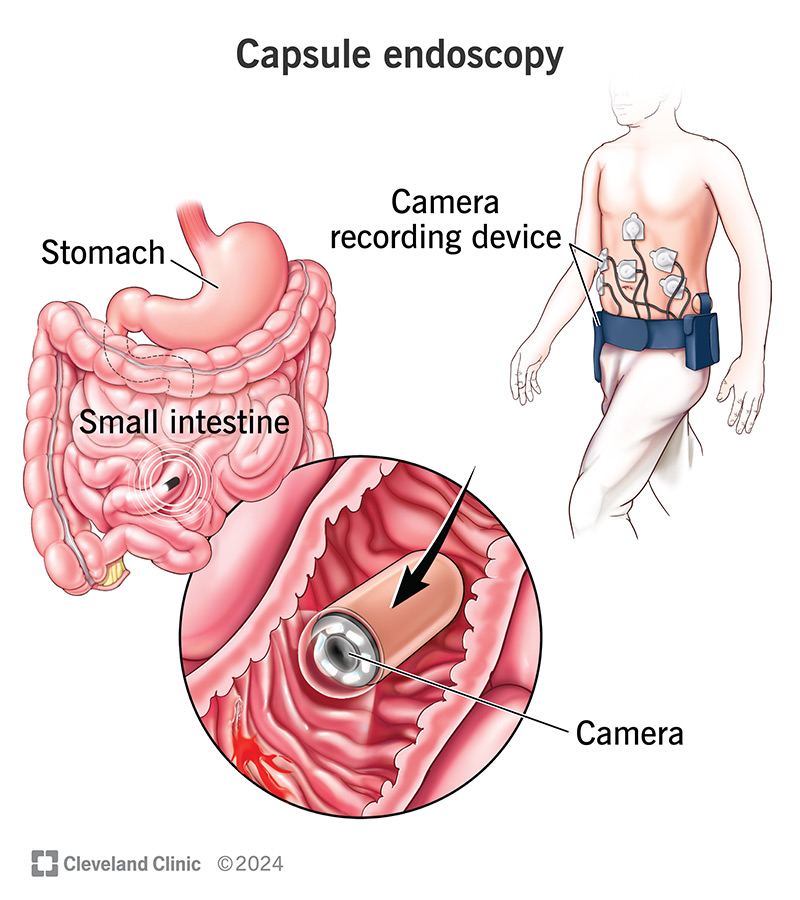 Während sich die Kapsel durch Ihren Verdauungstrakt bewegt, macht die Kamera etwa 10.000 Bilder. Ihr Arzt sieht sich die Bilder an und untersucht Ihren Dünndarm auf Blutungen, Tumore und andere Anomalien.